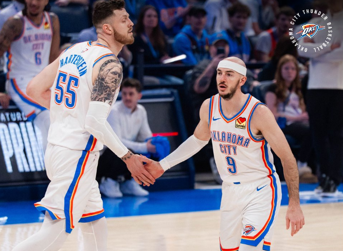 雷霆:霍姆格伦21分9板2助3断、乔20分4板、亚历山大20分3板10助2断、卡鲁索17分2板3断、麦凯恩15分、米切尔11分5板3助2断。